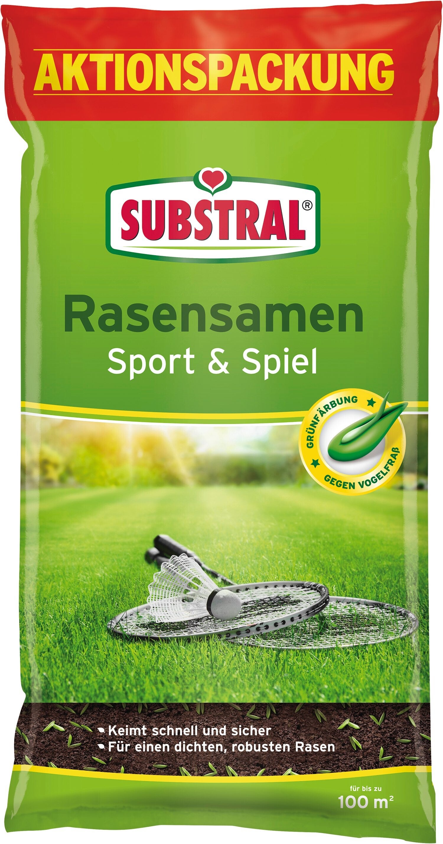 Der SUBSTRAL® Rasensamen Sport und Spiel enthält die spezielle, exklusive und hochwertige Rasensamen-Sorte SOS (Super Over Seeding) für den Haus- und Kleingarten, dahinter steckt ein bestimmtes Weidegras, welches sich durch Keimung und Entwicklung bereits in wenigen Tagen auszeichnet. Keimung und Entwicklung sind auch bei niedrigen Temperaturen (bereits ab 6°C durchgehender Bodentemperatur) möglich. Die meisten Unkräuter hingegen benötigen Keimtemperaturen von über 15°C, hier hat dieses spezielle Weidelgras einen deutlichen Vorsprung.