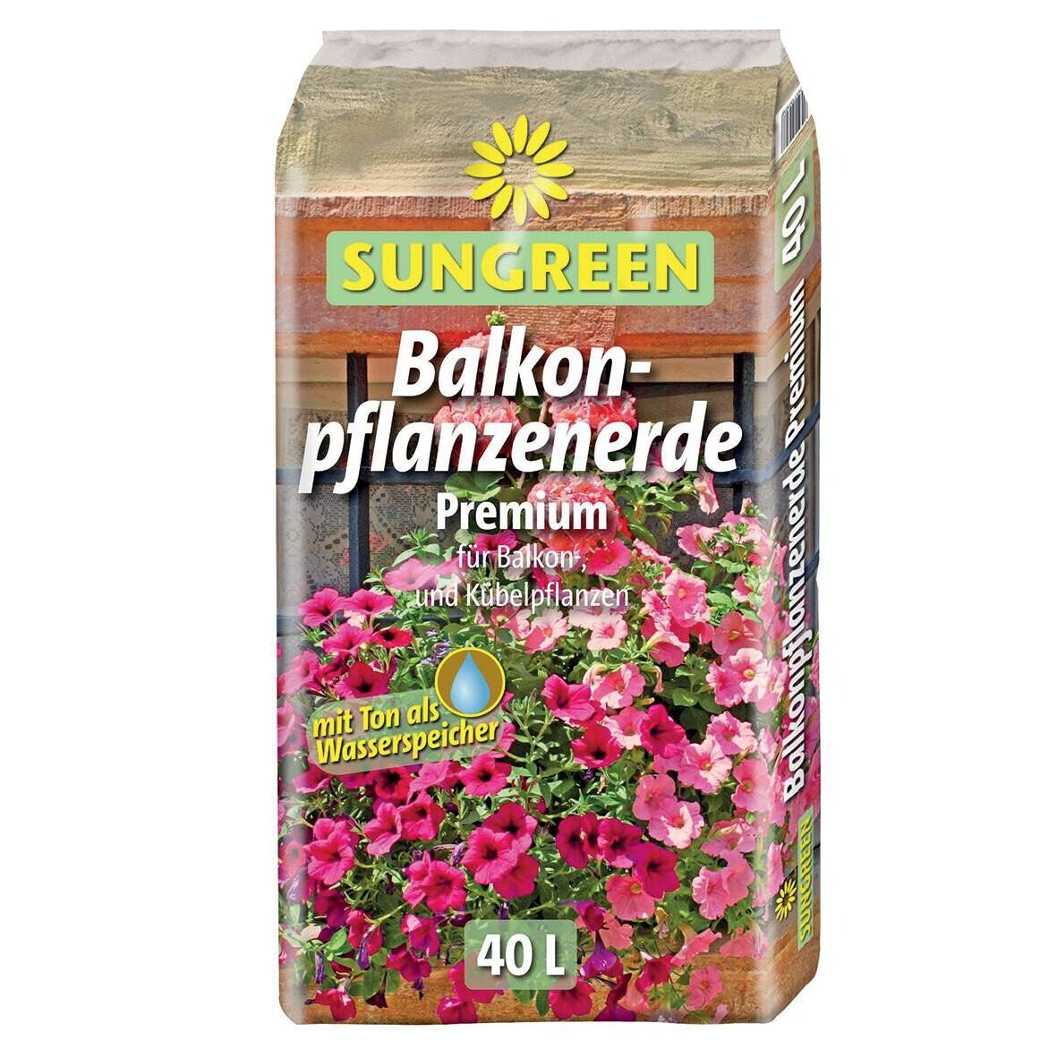Sungreen Balkonpflanzerde Premiumist eine mit Ton angereicherte und gebrauchsfertige Spezialerde für höchste Ansprüche