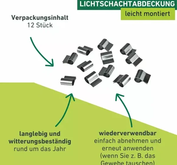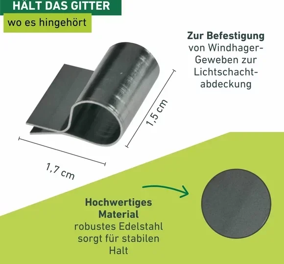 - ZUBEHÖR ZUR BEFESTIGUNG – Befestigungsklammern zur Befestigung von Windhager-Geweben zur Lichtschachtabdeckung