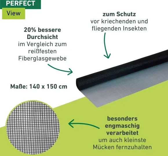 - TOP MATERIAL - Absolut witterungsbeständiges, reißfestes Fiberglasgewebe in anthrazit. Besonders engmaschig verarbeitet um auch kleinste Mücken fernzuhalten.