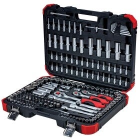 Entält u.a. Steckschlüsseleinsatz, 4-Kantsteckgriff, Zündkerzeneinsatz, 2K-Umschaltknarre, Innenvierkantantrieb, Bitadapter u.v.m.