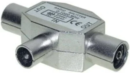 Zum Anschluß von zwei Fernsehgeräten an einer Antennensteckdose. Voll abgeschirmt, transformatorische Entkopplung.