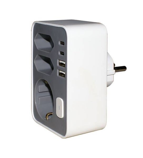 Steckdosen-Adapter 3-fach + 2 x USB-C + 2 x USB-A max. 3,4A + Schalter