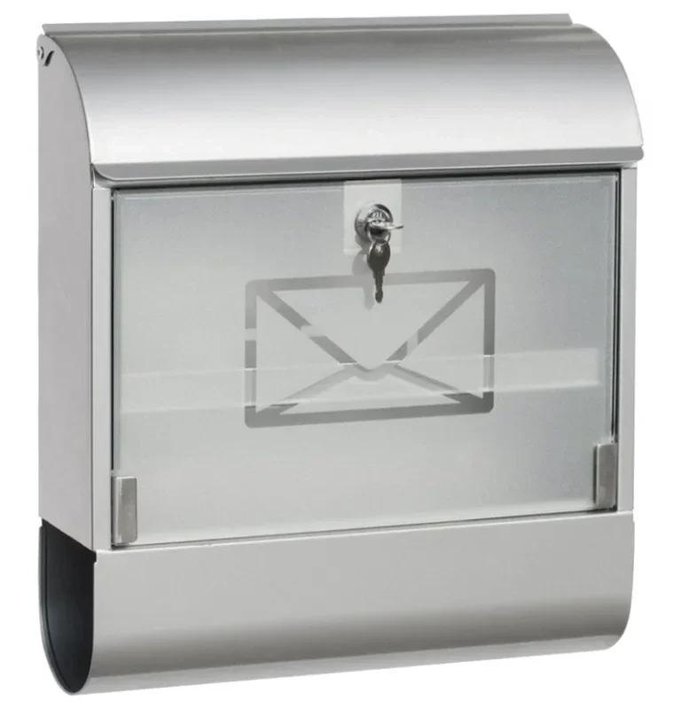 Briefkasten aus verzinktem Stahlblech mit gehärteter Glasfront und integrierter Zeitungsrolle